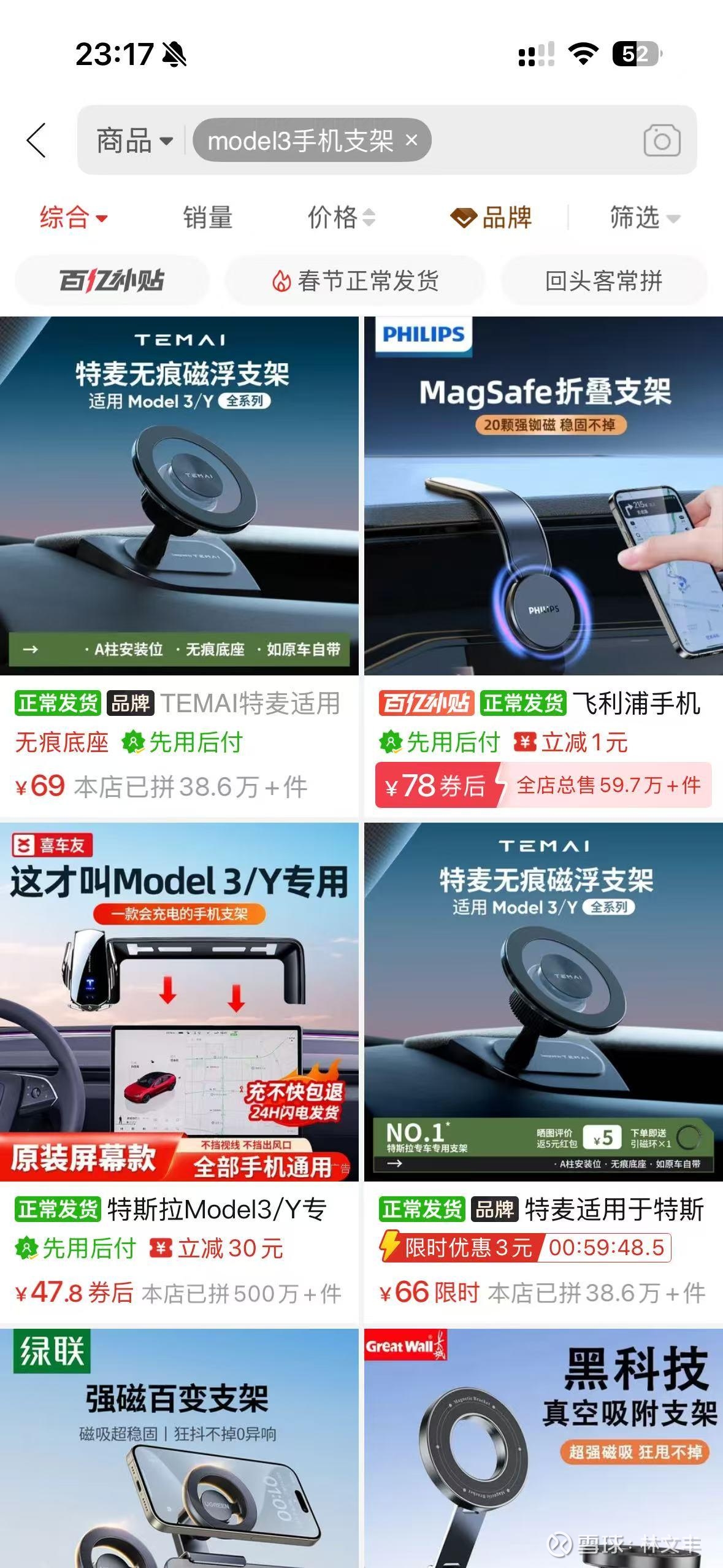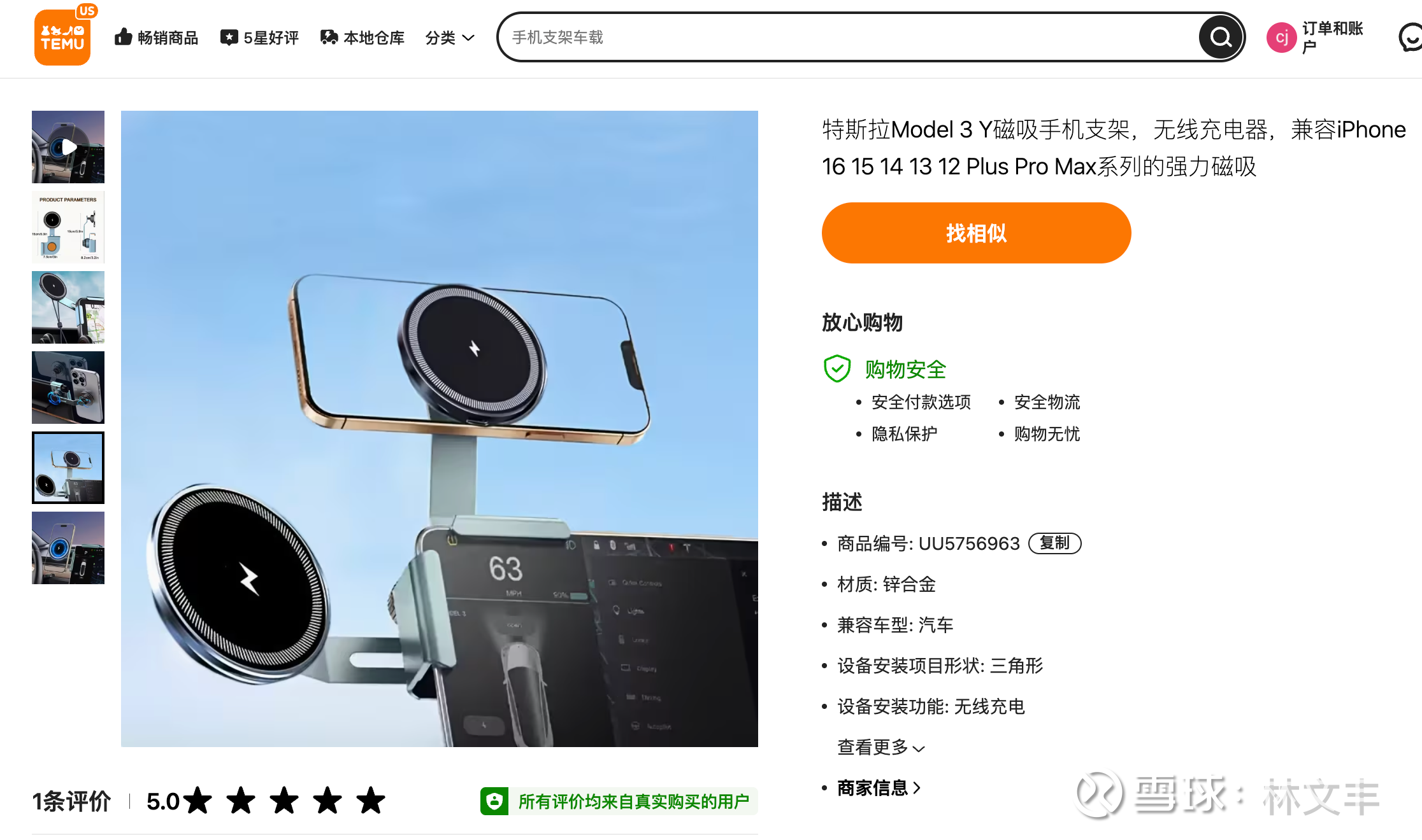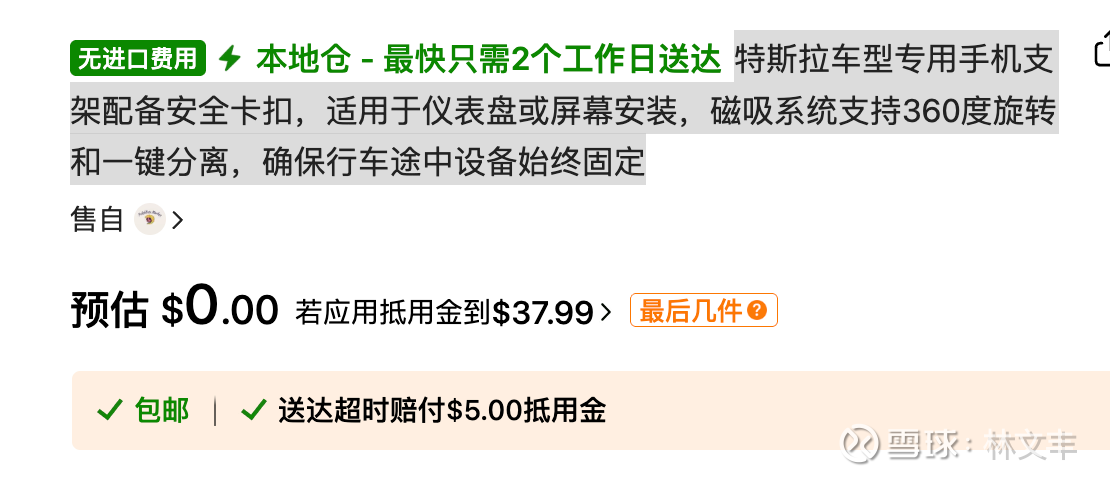 特斯拉汽车的手机支架 在 Temu 24 美元(中国跨境物流,6 天抵达),在亚马逊 30美元,在国内拼多多大概 50-80 元
