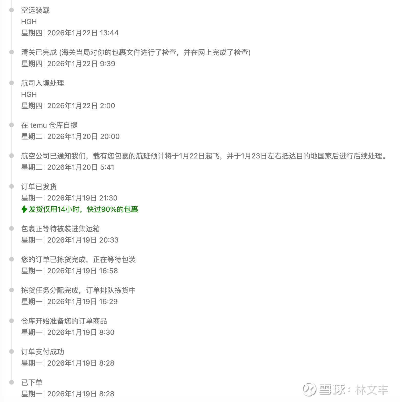即便依然从中国发货(跨境仓),Temu 通过海关数字化快线和包机包舱,已经把链路压缩到了极致。以前是“等货齐了再走”,现在是“流水线式不停运转”,5-7 天确实成了现在的正常水平。