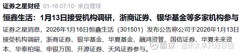 $恒鑫生活(SZ301501)$ 终于收到来自机构的资金注意力和关注。资金是股价的核心动力,在各种利好的形式下,应该启动缓涨的模式了。中间可能会有短暂的深跌,每次下跌都是位数不多的买入机会了。期待 50% -100%的涨幅,价投者可以看的更多。价值投机者则看短些,50%的空间应该不算夸张。
