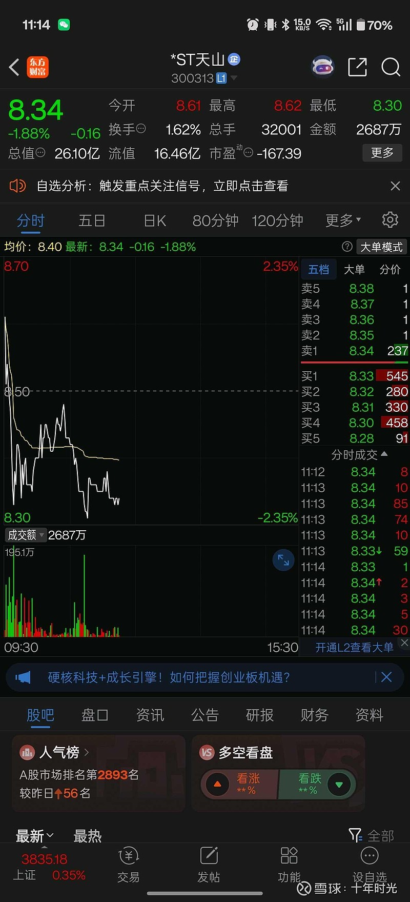 $*ST天山(SZ300313)$