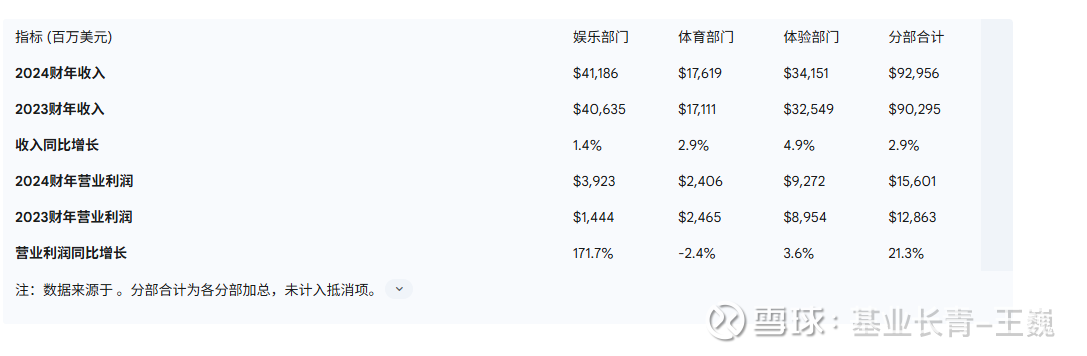 体验部门 (乐园、消费品): 收入341.51亿美元(增长5%);营业利润92.72亿美元(增长4%),继续扮演利润支柱的角色 26。