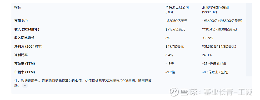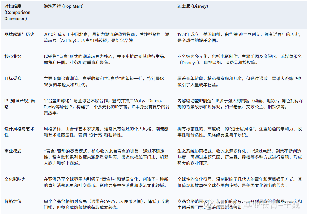 本部分将综合前两部分的分析,对两家公司进行直接比较,并最终回答核心问题:泡泡玛特是否有可能成长为像迪士尼一样的公司。