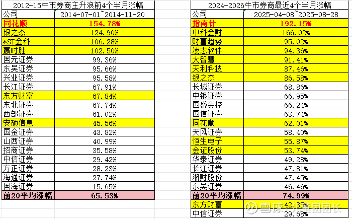 1.还是挑次新,从次新里面找,历史上,2014年的次新西部证券(2012-2015主板涨幅最多)、2019年2-3月的次新中信建投(2019龙头);
