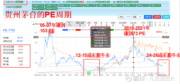 但是接下来的价值股19-21牛市,它随着行业和品牌的价值被发现,又一路干出了泡沫,干到了PE 73倍;
