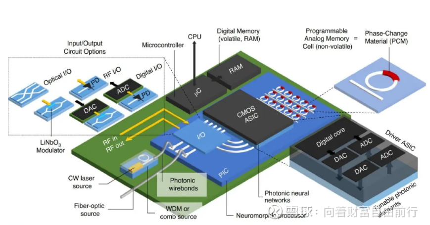 光计算芯片有2种类型,全光架构、光电混合架构。前者很牛逼,但是商业化量产难,主要是因为光功率损耗导致扩展性低,串扰噪声,集成难。