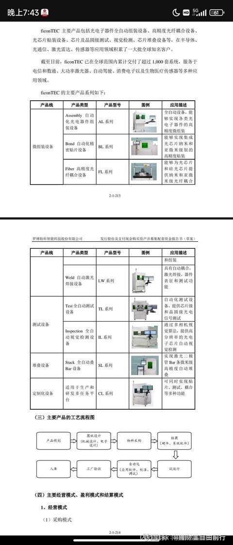 ficontec的设备主要是精密自动化组装、高精度光纤耦合、芯片贴装、芯片CP和FT阶段测试、视觉检测、芯片堆叠设备。需要注意的是这些设备背后的可量产的高精密组装、光纤耦合、物品定位、挪移能力才是关键,这些技术实力是全球第一的,有了这些,后续很多市场都可以做,而不仅限于我们目前看到的这些市场。