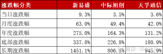 2)增速是三家都很不错,新易盛更胜一筹,主要是下游客户订单的放量;