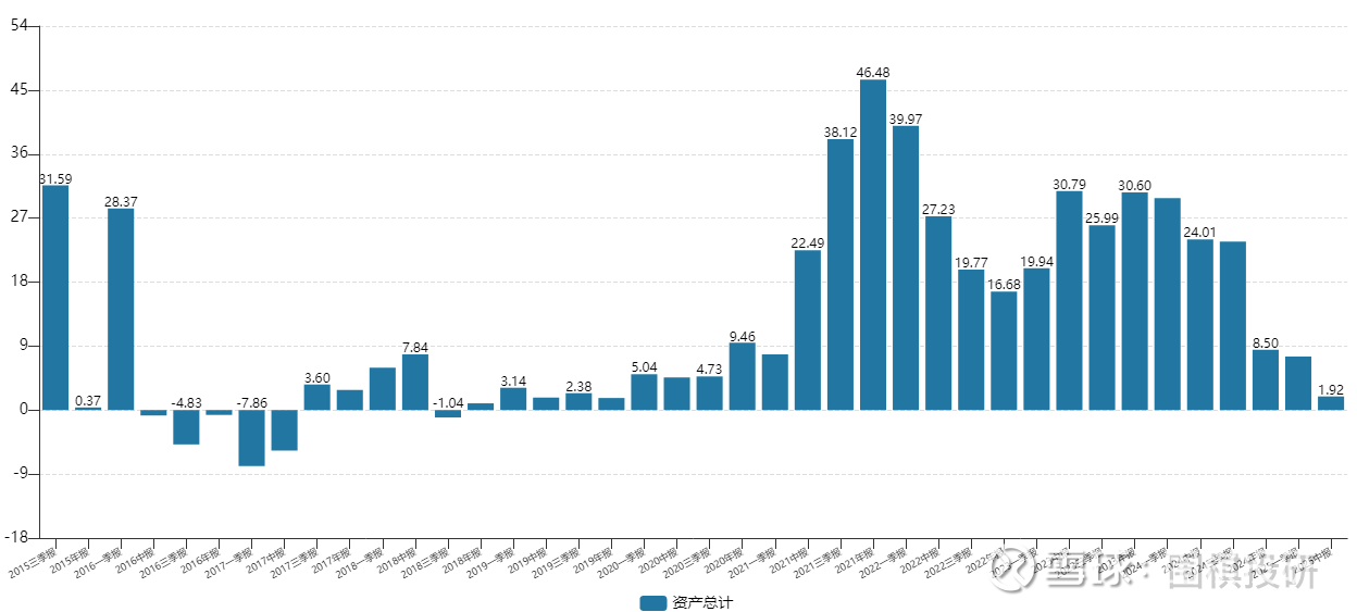 周期性非常明显,现在就处于一轮周期的底部位置,等什么时候资产增速开始提升,或许就是进入下一轮成长阶段的信号。