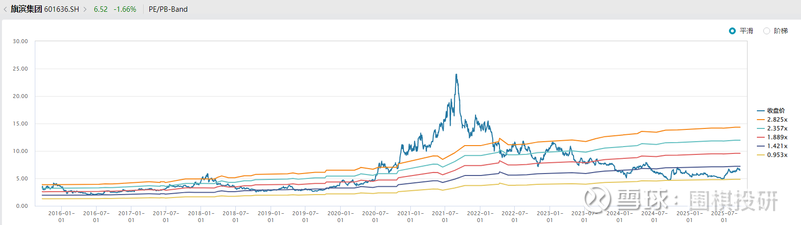 一是估值底线,即净资产。旗滨集团的净资产大概是150亿,归母净资产大概是135-140亿,如果市值跌到比净资产还低就值得关注,业内称为“破净”。
