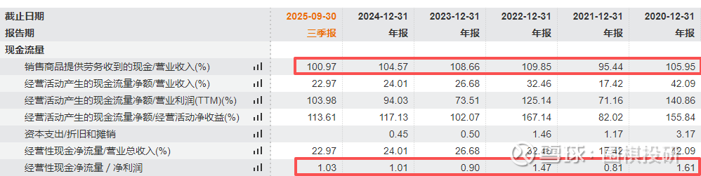 我经常看的两个指标:现金收入比,鱼跃近5年基本都在100%以上,说明回款能力很强,毕竟下游是医院和消费者都有;经营性净现金流和净利润比值,也都是很健康。手里攥着真金白银,就比较稳妥。