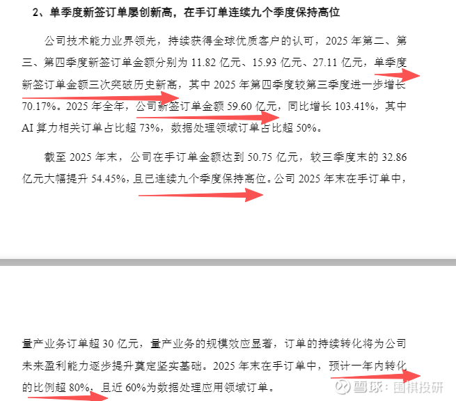 特别是在第四季度,单季新签订单高达27.1亿元,环比增长70.2%,显示出加速爆发的态势。这种J型曲线的增长斜率,说明市场对高性能算力芯片的需求,已经从概念验证阶段进入了大规模量产的军备竞赛阶段。