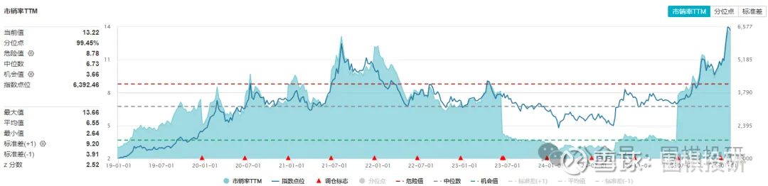 估值情况怎么样呢?涨了那么多肯定没法说便宜,半导体设备材料指数的市销率就是近几年高点。
