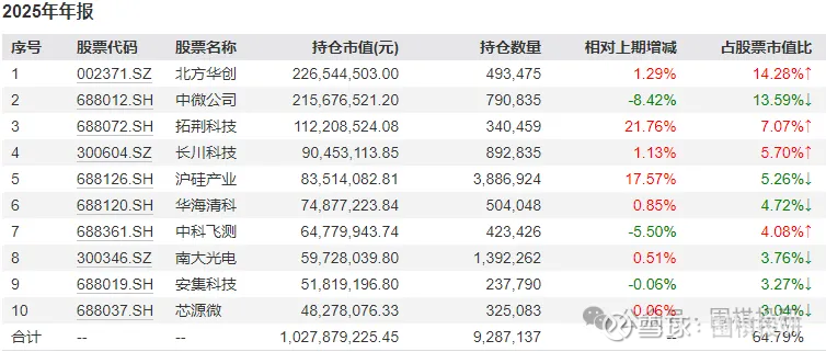没错,芯源微的控股股东是北方华创。更有趣的是,大部分半导体设备ETF里北方和芯源微就是前十大里的“一头一尾”。