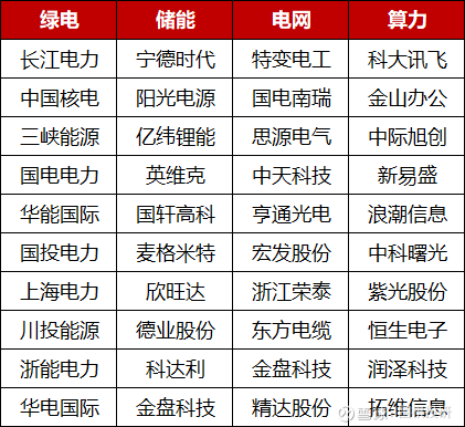 至于具体投资方向,刚才查了下,发现相关赛道都有对应的ETF,绿电、储能、电网、云计算等等,那就偷个懒,把这些ETF前十大重仓股列出来,供大家参考。