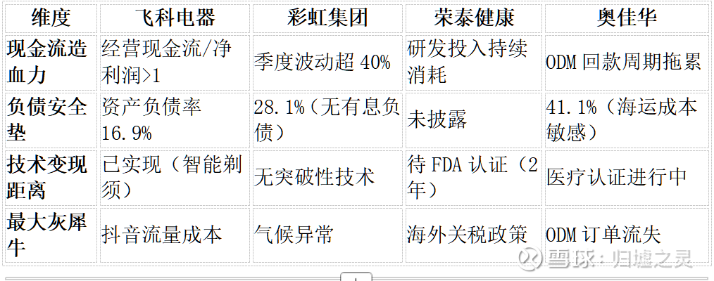 当前核心矛盾在于:技术投入的长期性(荣泰健康5%研发费率)与季度业绩压力(奥佳华ODM毛利35%)的撕裂。这要求投资者在脑机接口等颠覆性技术(潜在市占率30%)与现金流奶牛业务(飞科剃须刀39%份额)间建立弹性配置框架。