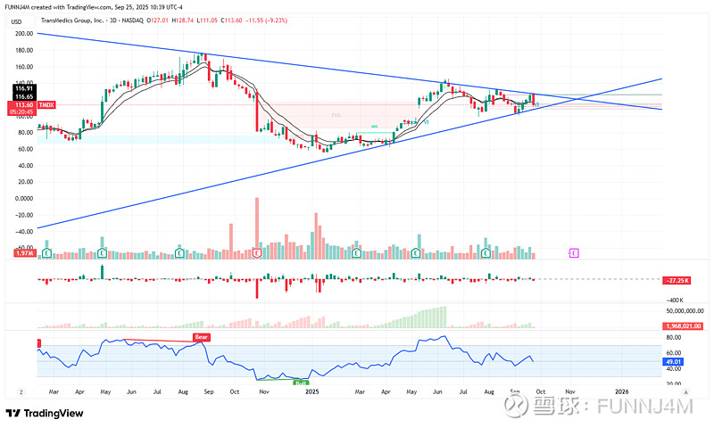 忽略噪音,大级别和小级别都在收敛三角内,我估计10月27的财报很可能就走出这个三角了