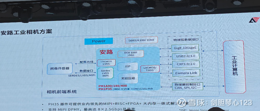 那为什么说AI智能相机是传统工业相机无法比拟的,FPGA是AI相机的功臣呢?安路科技的合作伙伴在技术沙龙上就解释过,例如传统的传输方式带宽受限;非FPGA相机采用嵌入式CPU,导致了系统和数据传输的延迟,不利于工业现场的实时性要求和AI端侧的部署,另外还存在算力部署不均匀和算力浪费的问题。而FPGA给工业相机带来的优势则显而易见的,首先高性能与高速度,FPGA的并行架构处理图像预处理任务的速度远超顺序执行的CPU,能够满足高速生产线的需求。然后是低延迟,从传感器采集到输出处理结果,整个流程在硬件中完成,延迟极低且确定,对于需要实时控制的系统(如机器人抓取)至关重要。然后是高灵活性与定制化,用户可以根据特定的检测需求对FPGA进行编程,打造独一无二的相机功能。这是固定功能的ASIC相机无法比拟的。最后是系统集成与成本优化:一颗FPGA可以替代多个分立芯片(如DSP、逻辑控制器、接口芯片),降低了相机板的复杂度和体积,从系统层面优化了成本。这就是为什么我在展台后看到的是定制化的FPGA相机。