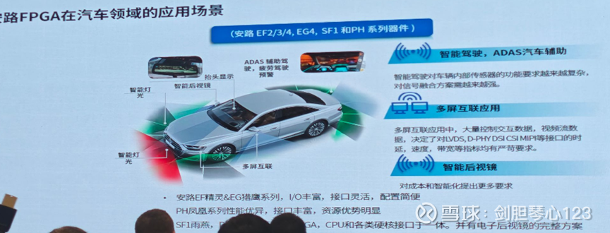 我个人理解,FPGA在汽车上的应用远不止这些,还包括BMS和电机控制;而ADAS/自动驾驶的主传感器预处理域控制器,则是FPGA在汽车领域的“皇冠”。但这也是技术壁垒最高的地方,竞争对手是赛灵思、英特尔等巨头的顶尖车规产品。国产FPGA需要同时在制程、性能、功耗、功能安全、可靠性上达到顶尖水平,并构建完整的软件生态,才能进入这个核心市场。我在研讨会上听安路的高管介绍过,中国FPGA的中低端市场,正在快速被国产厂家渗透;而高端FPGA的长期突破也是安路科技坚定不移的追求。在车载这块,我个人理解,像车载信息娱乐系统与液晶仪表盘,实时性要求比底盘控制要低一点,后装的ADAS系统、智能后视镜等,车规要求相对前装要容易一些,这些都为国产FPGA厂商提供了广阔前景,是可以率先突破并实现国产化替代的。安路科技,在车载这方面的布局全面,从智能座舱、人机交互、汽车后视镜CMS方案,直到车载电控系统和自动驾驶方案,都已经有系列器件来支撑,展示了国产厂商的研发实力和创新精神。中国的新能源厂商对汽车行业的理解和创新其实早就站在了世界前沿,汽车领域的国产芯机会我一直非常看好,并重点关注。