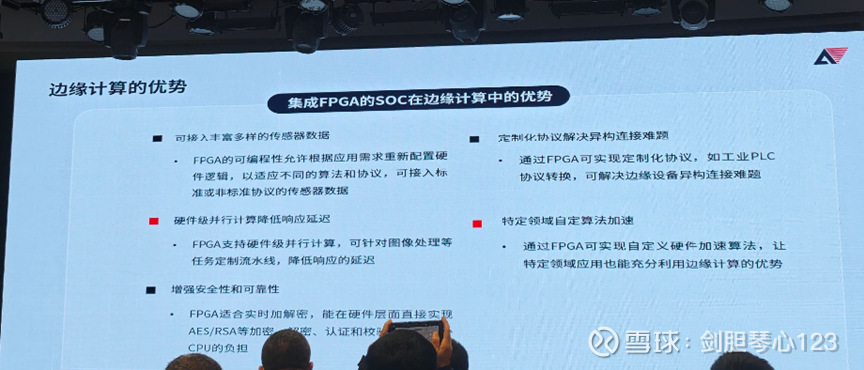 以边缘计算为例,结合我个人的一些学习理解,讲一点皮毛的认识。端侧AI这两年在资本市场同样是热门和核心话题之一。边缘AI的应用场景太广了,凡是需要实时视频与图像分析(比如智能摄像头 、工业视觉、零售分析)、自然语言处理(如智能家居、车载语音)、传感器融合(如机器人、自动驾驶)以及一些关键敏感场景(如医疗、金融)都需要边缘计算的加速。与通用的CPU、GPU以及专用的ASIC相比,FPGA在边缘AI领域的优势主要是高能效、低延时、并行处理和确定性时序。有人说,专用的ASIC是FPGA的主要竞争对手。某种程度讲没错。但区别在于,FPGA的定位就是在批量生产之前和之中,比如原型验证、多样化需求和需要持续更新算法的场景,而ASIC适用于超大规模量产,降成本用的。FPGA是“软件定义硬件”,助力AI算法快速落地。问题在于,很多用于边缘计算的场景,尤其是工业领域,定制化场景突出;而很多民用新场景需要又多元化,需要持续迭代,所以FPFA在端侧AI领域始终占领着重要的一席之地。