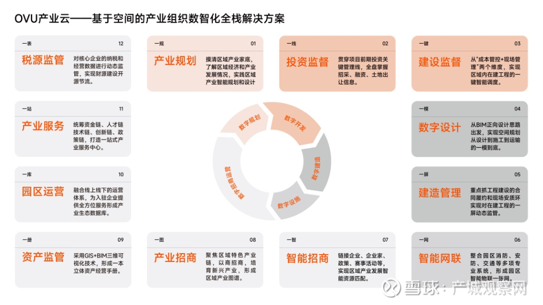 数字化转型则为中电光谷的轻资产服务插上了“智慧翅膀”,成为其服务能力升级的关键引擎。在第五代产业园发展趋势下,单纯的“线上化”已无法满足市场需求,中电光谷精准把握“以数据和 AI 重构园区逻辑”的行业变革,通过OVU 产业云、OVU 零碳云数字化平台构建起轻资产服务的智能化底座。