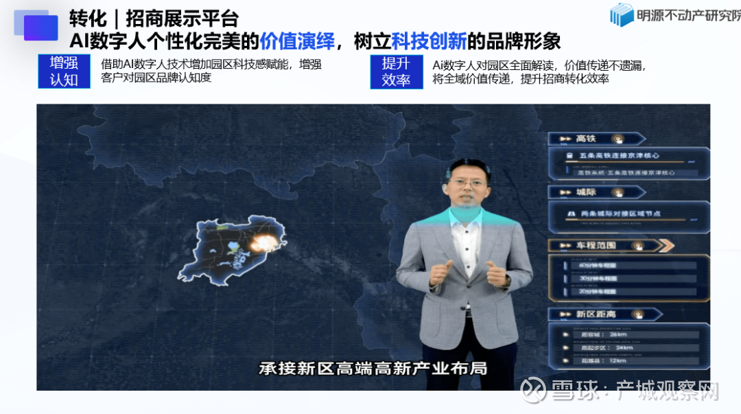 转化过程中,可以充分利用数字孪生、AI数字人等科技手段,提升园区展示效果和招商说服力,解决客户决策抗性。在转化环节,需要高效地传递园区价值。利用数字孪生技术,可以真实还原园区环境,甚至模拟工业上楼项目的物流、交通等场景,解决企业的决策抗性。对于缺乏专业讲解人员的园区,AI数字人可以标准化地输出园区价值点和招商说辞,确保故事被完整、生动地讲述。