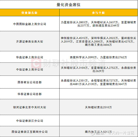量化资金活跃度较高,次新股天和磁材获两家量化席位买入,遭两家量化席位卖出,同时遭一家量化席位做T。