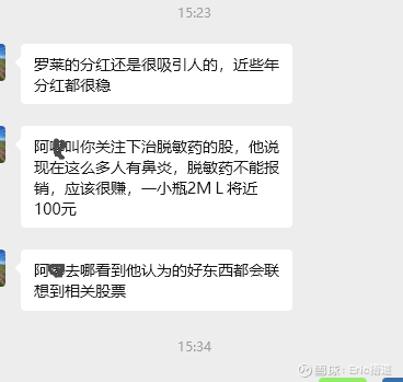 看来小娃的投资的敏锐性比我厉害啊,去年底他们说过泡泡玛特,从日常生活中发现投资机会,确实是个好的途径。大前天去深圳看医生,他也发现投资机会了,治鼻炎的药物,脱敏药。我查了一下,才发现我武生物是生产脱敏药物,毛利率95%,比茅台还厉害啊,不过不太合我的选股标准啊,估值不低,跟踪一下,计划给他买二三手,赚了给他当零花钱,鼓励一下他的投资意识查看图片