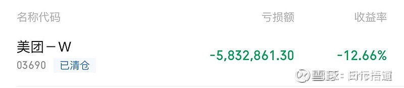 刚看到两个大V这两天的割肉比赛,一个是割肉五粮液,亏了381W,一个是割肉美团,亏了583W