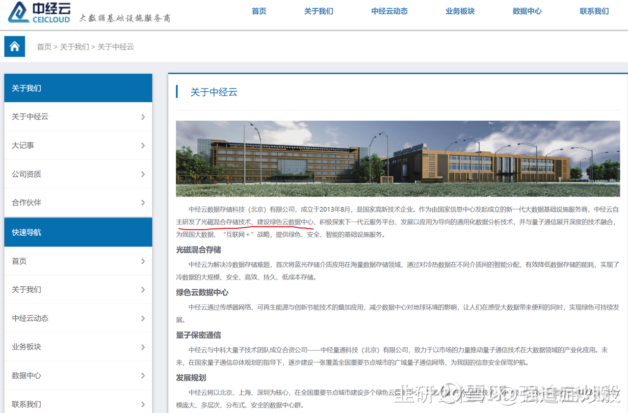 中经云数据存储科技(北京)有限公司,成立于2013年8月,是国家高新技术企业。作为由国家信息中心发起成立的新一代大数据基础设施服务商,中经云自主研发了光磁混合存储技术、建设绿色云数据中心、积极探索下一代云服务平台、发展以应用为导向的通用化数据分析技术,并与量子通信展开深度的技术融合,为我国大数据、“互联网+”战略,提供绿色、安全、智能的基础设施服务。