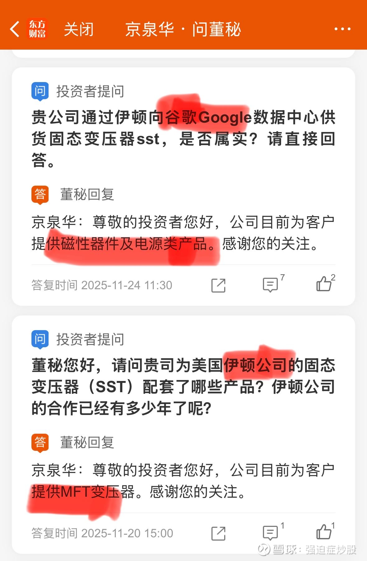 两个问题一对比,问题1的$京泉华(SZ002885)$ 客户就是谷歌$谷歌A(GOOGL)$