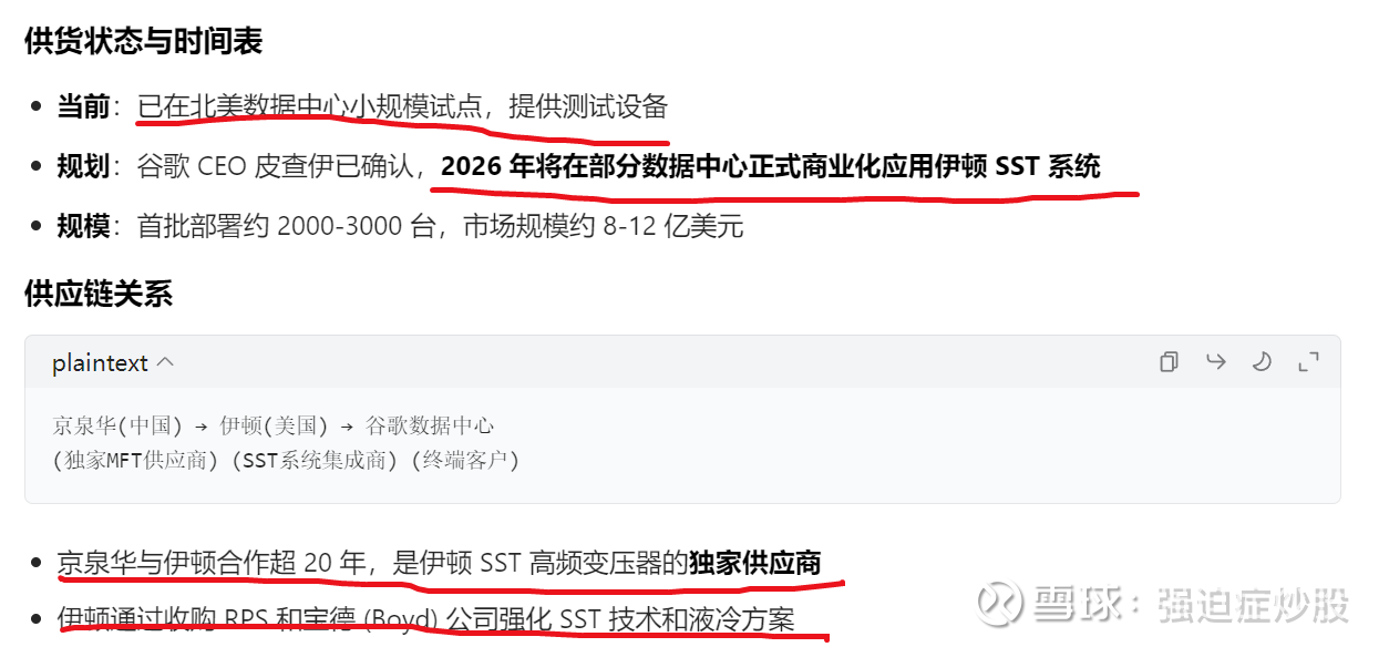 贵公司通过伊顿向谷歌 Google 数据中心供货固态变压器 sst,是否属实?请直接回答。