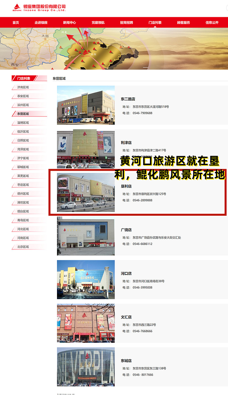 核心观景点在山东东营垦利区黄河口旅游区,黄河口旅游区属于东营垦利区,银座股份深度布局垦利和东营。布局多个门店。