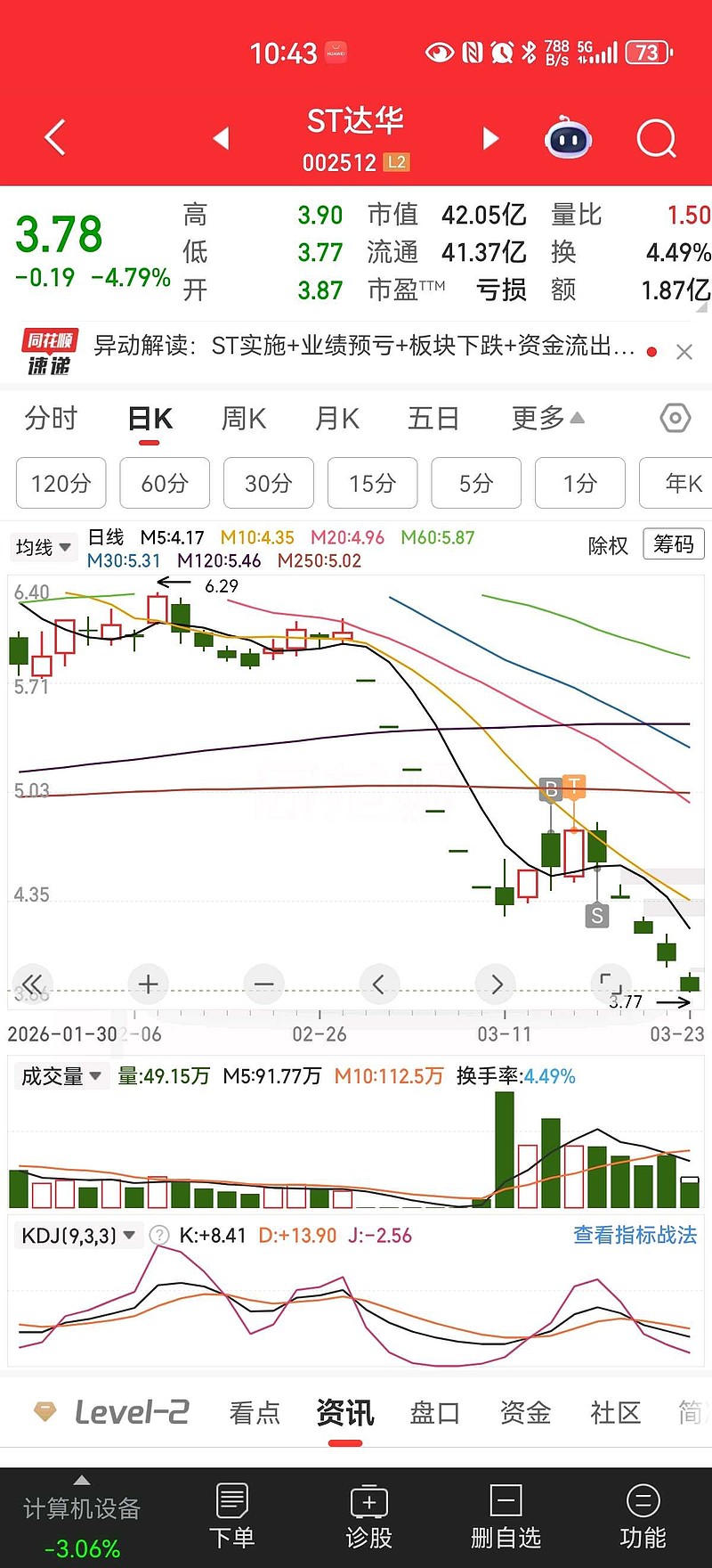 $ST达华(SZ002512)$