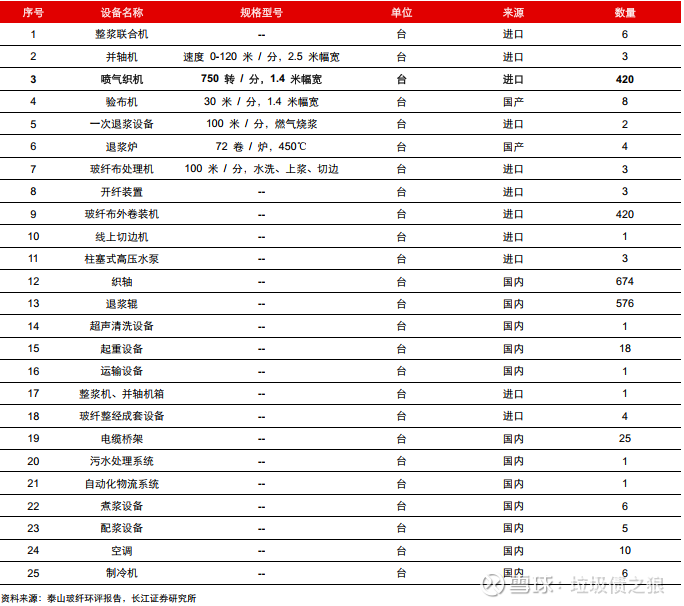 图7:某玻纤电子布织布项目设备配比一览
