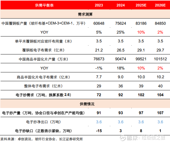 图5:电子纱供需平衡表