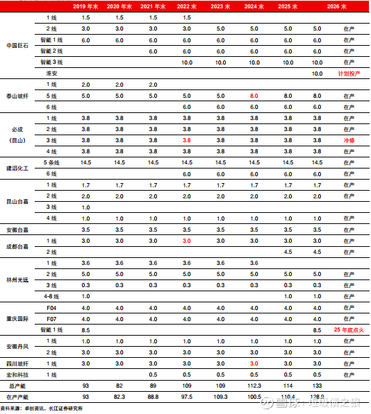 图4:电子纱行业产能情况梳理(万吨)