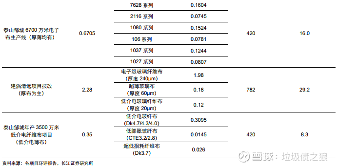 普通电子布价格:2025-2026年景气向上,价格筑底后上涨。普通电子布 2022年下半年以来价格底部承压,主要源于需求走弱及中国巨石大幅投产(中国巨石产能从2021年的16.5万吨提升至2023年的26.5万吨),但2024-2025年需求上行且新增产能有限(2024年泰山玻纤从5万吨技改为8万吨, 2025年成都台嘉点火4.5万吨),加上部分薄布产能转产AI电子布,带来普通电子布价格上行,7628电子布不含税从2025年初的3.4元/米已涨至年末的3.9元/米, 2026年1月再次提价0.2元/米至4.1元/米。