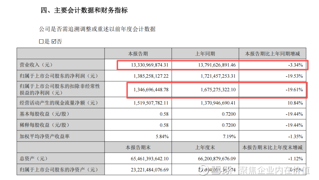 =》这个也是龙佰集团迅速给出提价函的原因,现在行业是量价齐跌的状态,营收保持的还算不错,降幅不大,净利润掉了有接近20%,主要还是毛利率和净利率下降了。