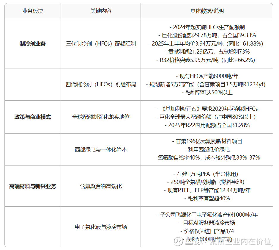 巨化股份的核心净利润高度依赖制冷剂业务(占比超70%),其高毛利率(50%+)和配额制下的价格优势是业绩增长的核心驱动力。其他业务板块目前贡献有限,但含氟精细化学品(如电子氟化液)可能成为未来增长点,目前看贡献也不大,保持持续跟踪!