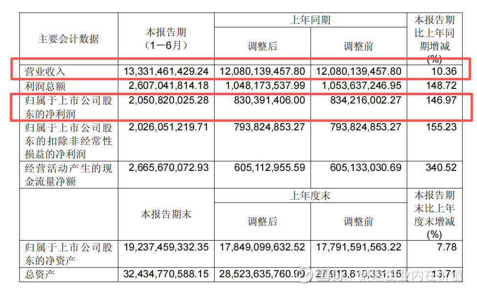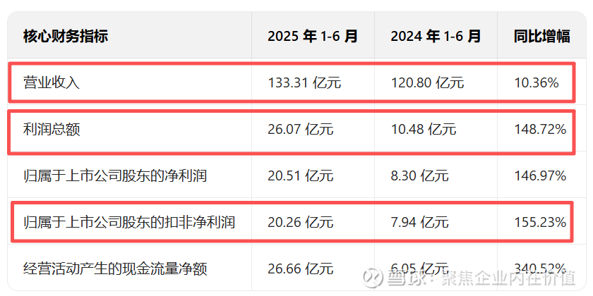 2025 年上半年,巨化股份业绩表现亮眼,核心财务指标同比均实现大幅增长,具体数据如下: