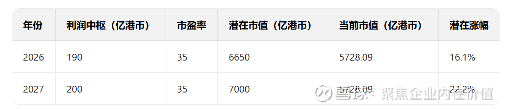 按照35倍中枢,2026-2027年,190亿港币,200亿港币中枢的话,那么应该是=》