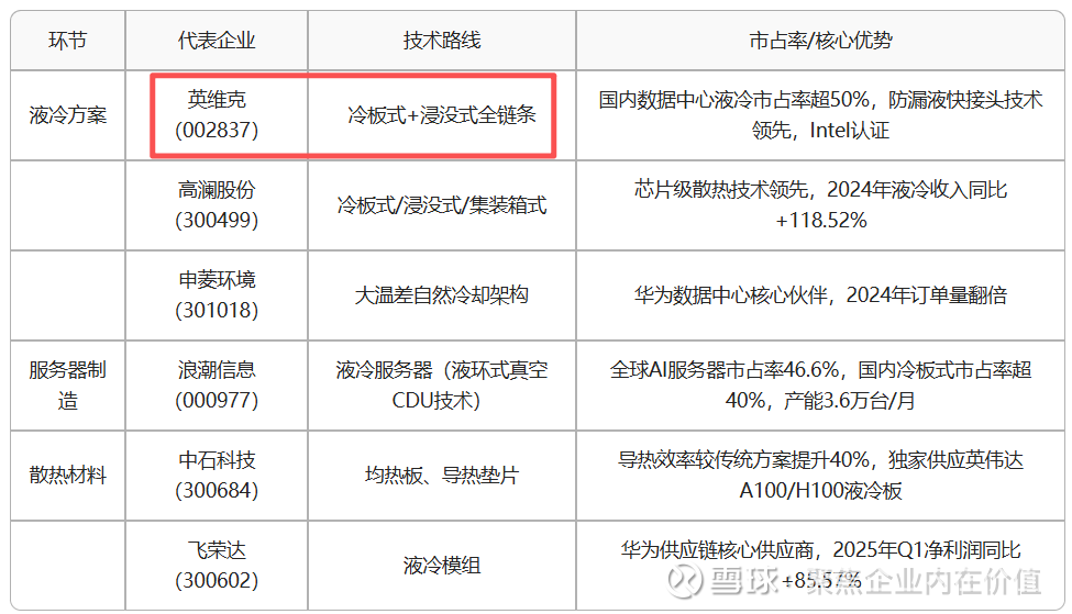 那么下一个问题来了,国内的液冷行业龙头上市公司有哪些?