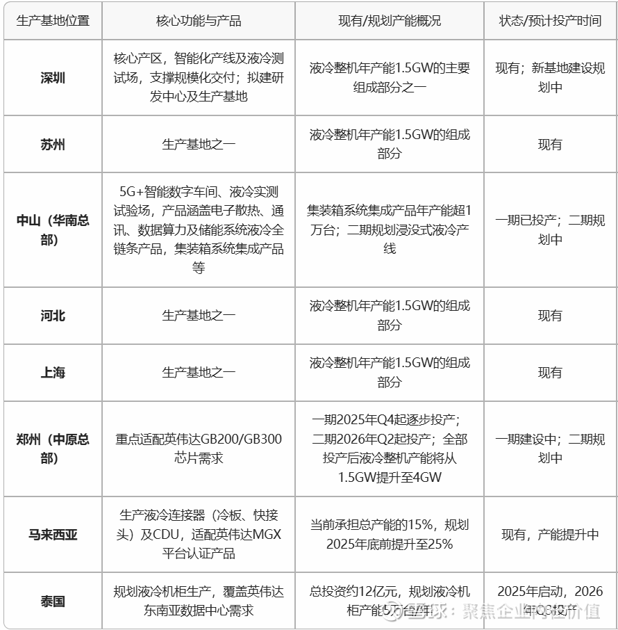 泰国工厂已于2025年启动建设,规划液冷机柜年产能5万台,预计2026年第三季度投产,重点覆盖英伟达在东南亚的数据中心需求。