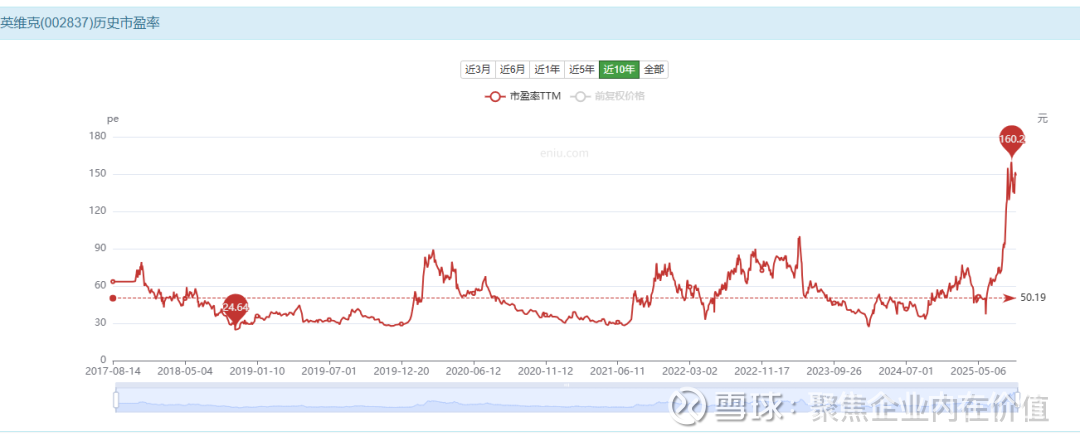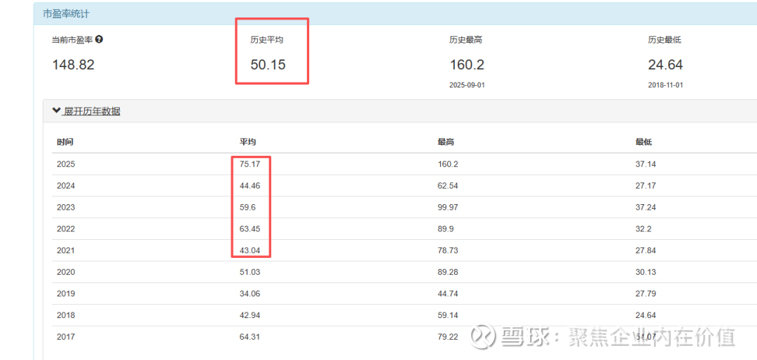 历史平均市盈率是50倍,最低到过27倍,最高到过100倍。平均的话,给到40倍 50倍 60倍。
