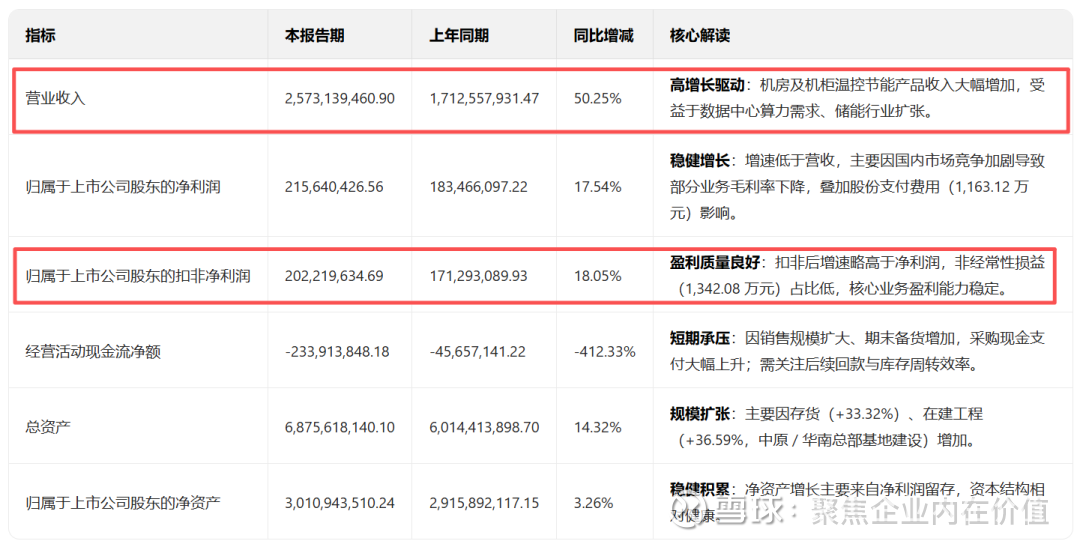 核心业务深耕持续受益于数据中心算力密度提升(液冷需求)、储能行业高速增长(“双碳” 目标),预计机房与机柜温控仍为主要增长引擎。