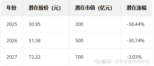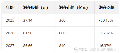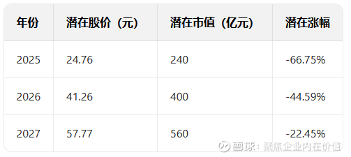 就我而言,选择50倍是可以看一下的,选择40倍是可以接受的,选择60倍是高估的路数。目前就只有60倍,2027年的市值还能看,潜在涨幅也还可以。