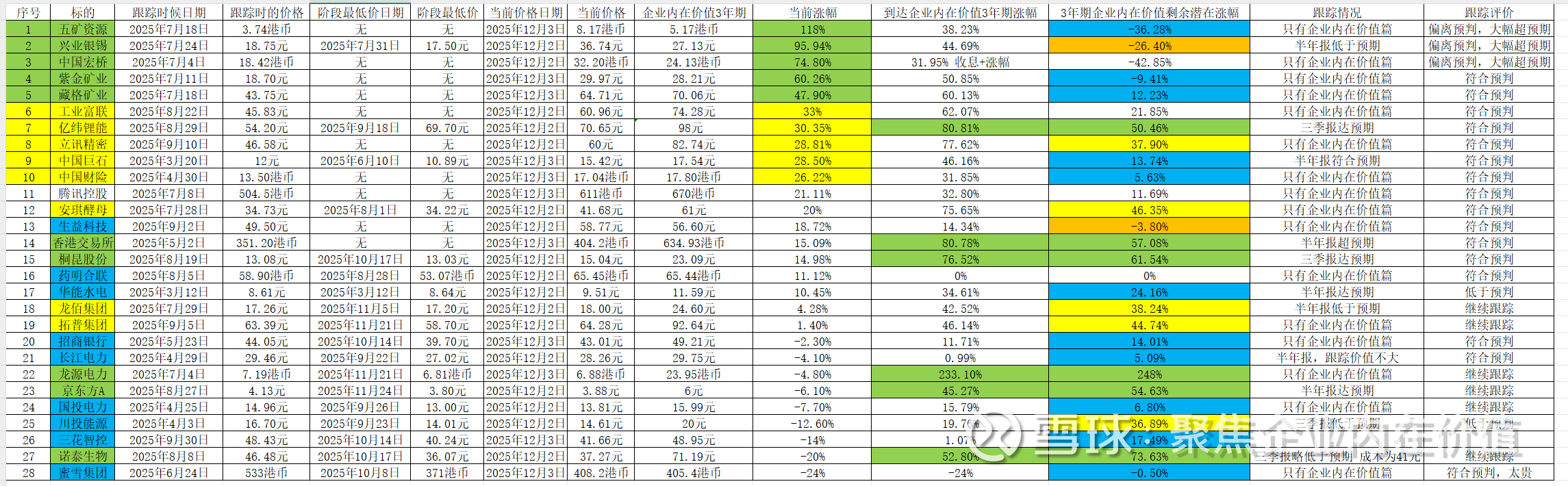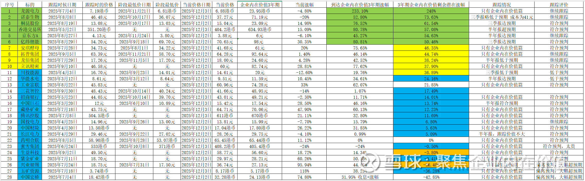 2026年度潜力跟踪表=》布局明年重点跟踪的标的,重点跟踪和布局