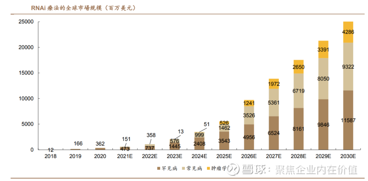 6.根据灼识咨询的数据,RNAi 疗法全球市场规模在 2024 年预计为 34.59 亿美元,到 2030 年预计为 251.95 亿美元,CAGR 为 39.2%,保持高增速。随着我国企业的管线逐渐进入商业化,预计我国小核酸药物市场也将保持高增长。