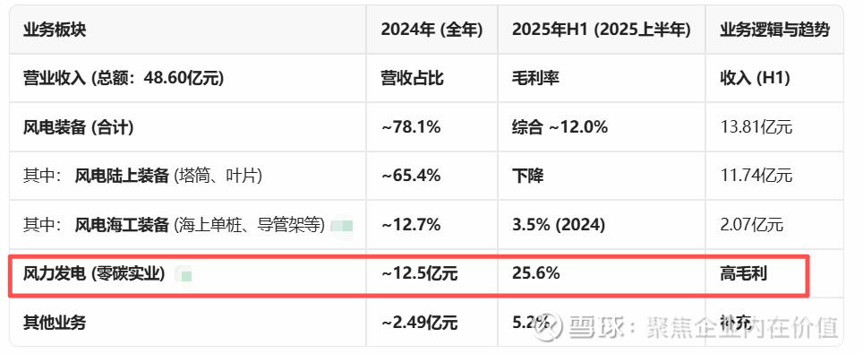 风能装备制造:贡献了绝大部分营收。虽然公司主动控制规模,但塔筒和叶片仍是现金流的主要来源 。