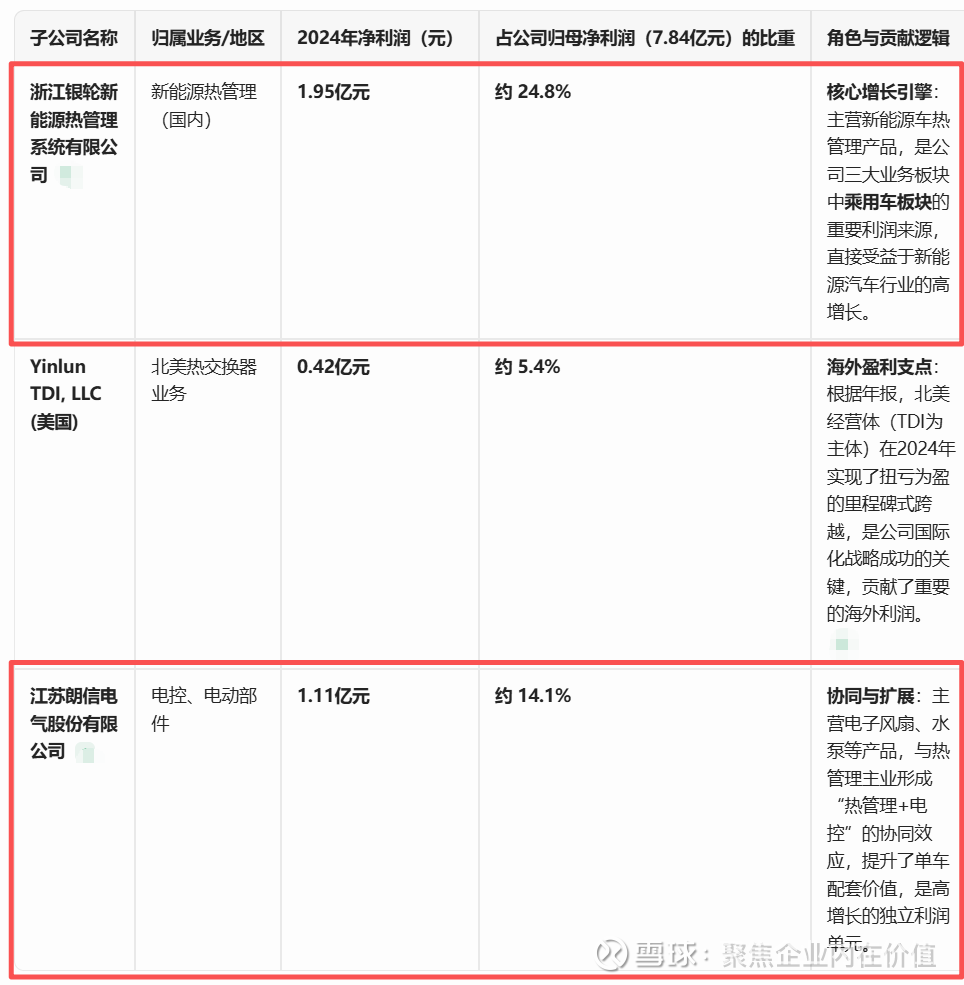 仅这三家主要子公司合计贡献的净利润就占公司归母净利润的 44.3% 以上。其中,银轮新能源是绝对的利润支柱。